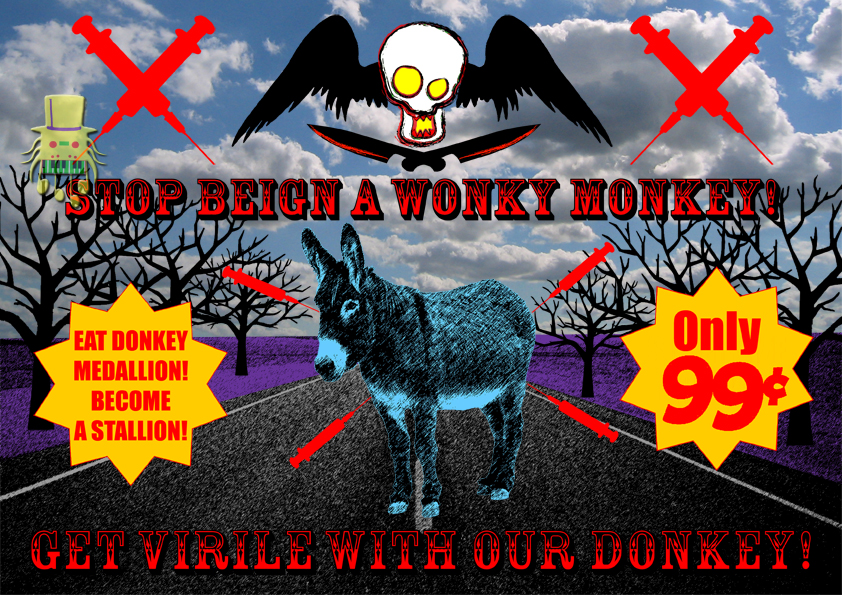 The concept is about an advertisement campaign. A company which breed, feed, kill, cuts and sells the meat from the animals. The idea of the corporation which uses always the same logo and the same colours to be recognized on the market. Same colours, same context, same scenario, same style. Also, I wanted to put more empashis on the language proper of sick advertisement campaigns which become oftenly bizzarre and use weird catchy rhymes, simple language which get stuck in our mind. So I went on with finding freaky catchwords and have a full series of same but not quite yet images about a company which makes prestige of its filth. It's a meat cheat!