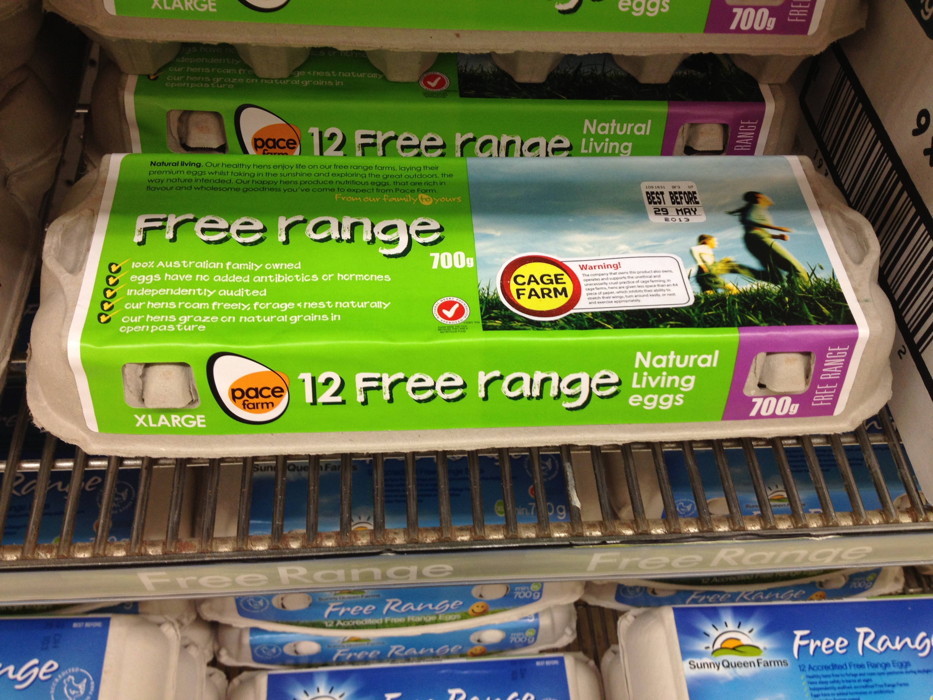 Because I used the branding of Woolworths, I implemented it in Woolworths. I only covered one store and would prefer not to say which one, but I implemented it in the aisle where the eggs are situated, and used the plastic clips used in store to put them up on the shelves. I also stuck warning labels on egg cartons on the shelf.