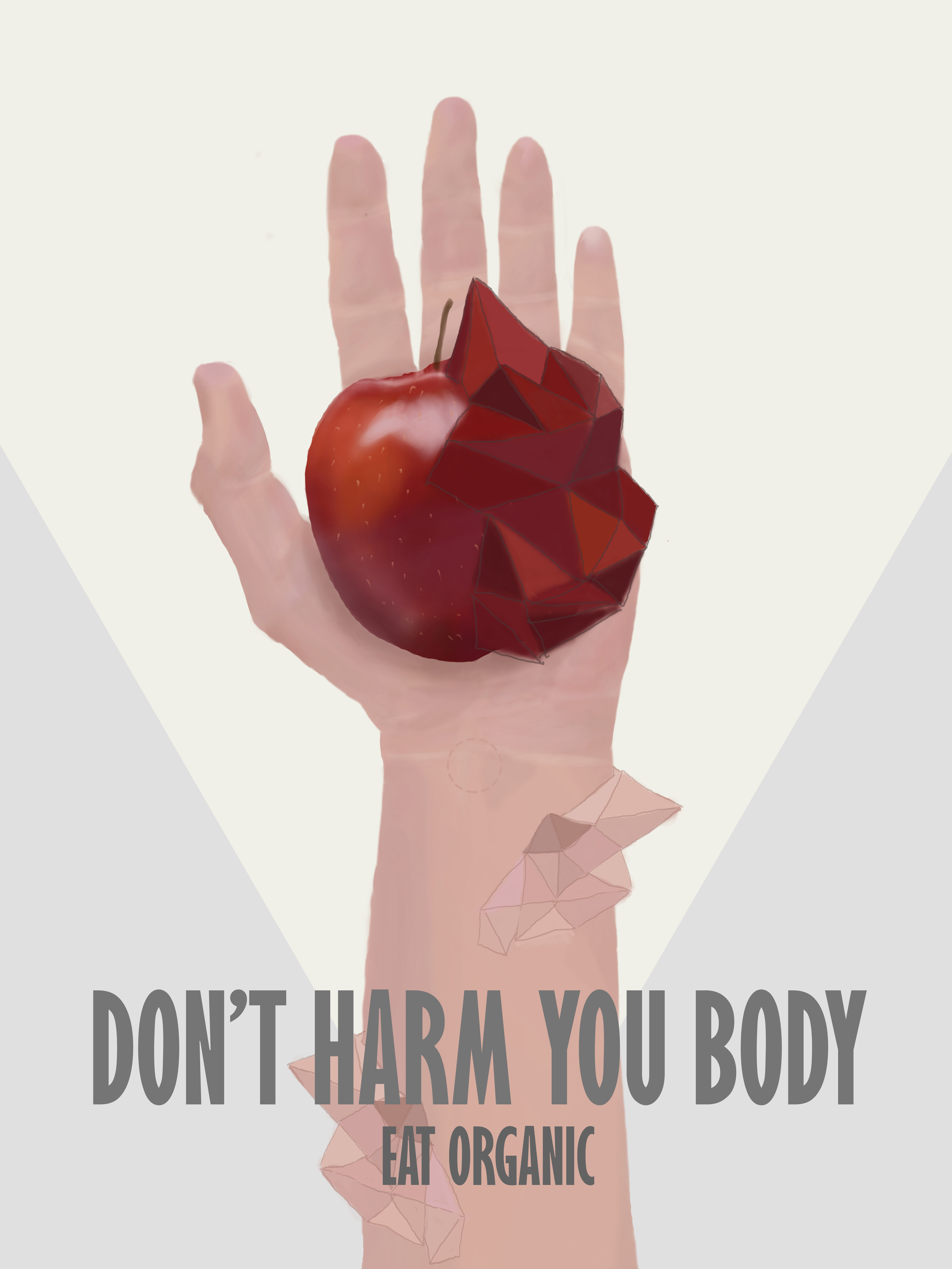 I tried to go for a modern propaganda style poster, very simple in which I show the duality of an apple, its only one poster and its inspired in Russian constructivism propaganda.