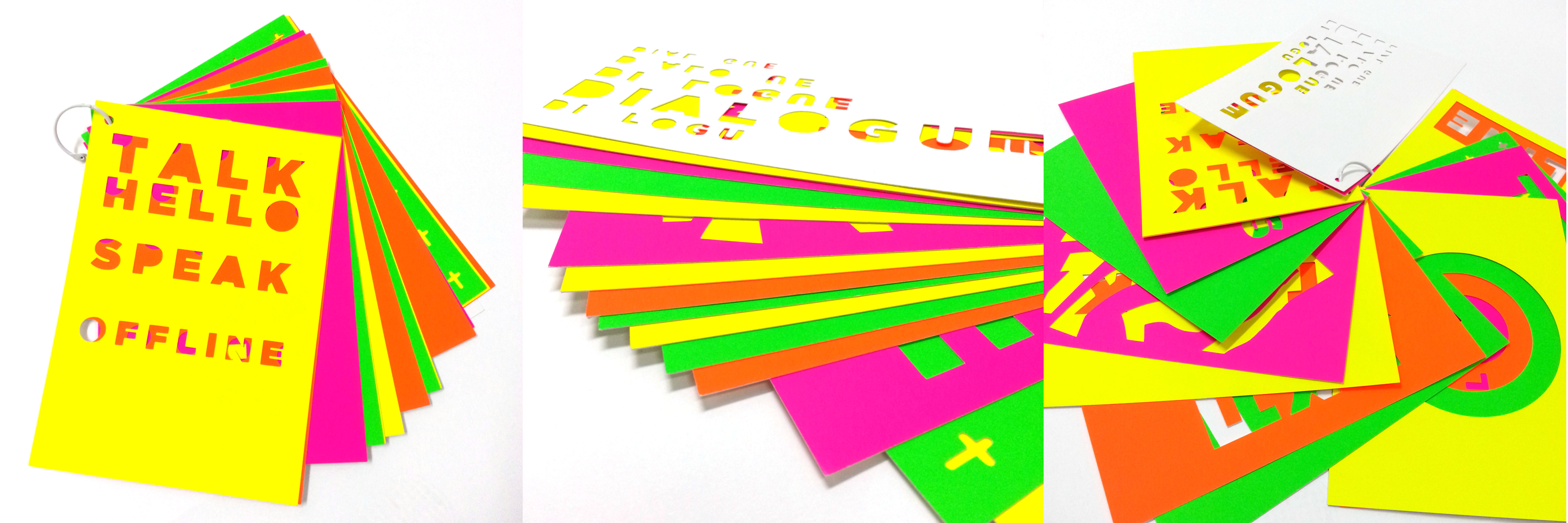 It aims to evoke thought and conversation about the issues of dialogue but most of all it is aimed to remind people to go back to the basic of Dialogue. Verbally TALK, say HELLO, SPEAK to people and have some time OFFLINE.