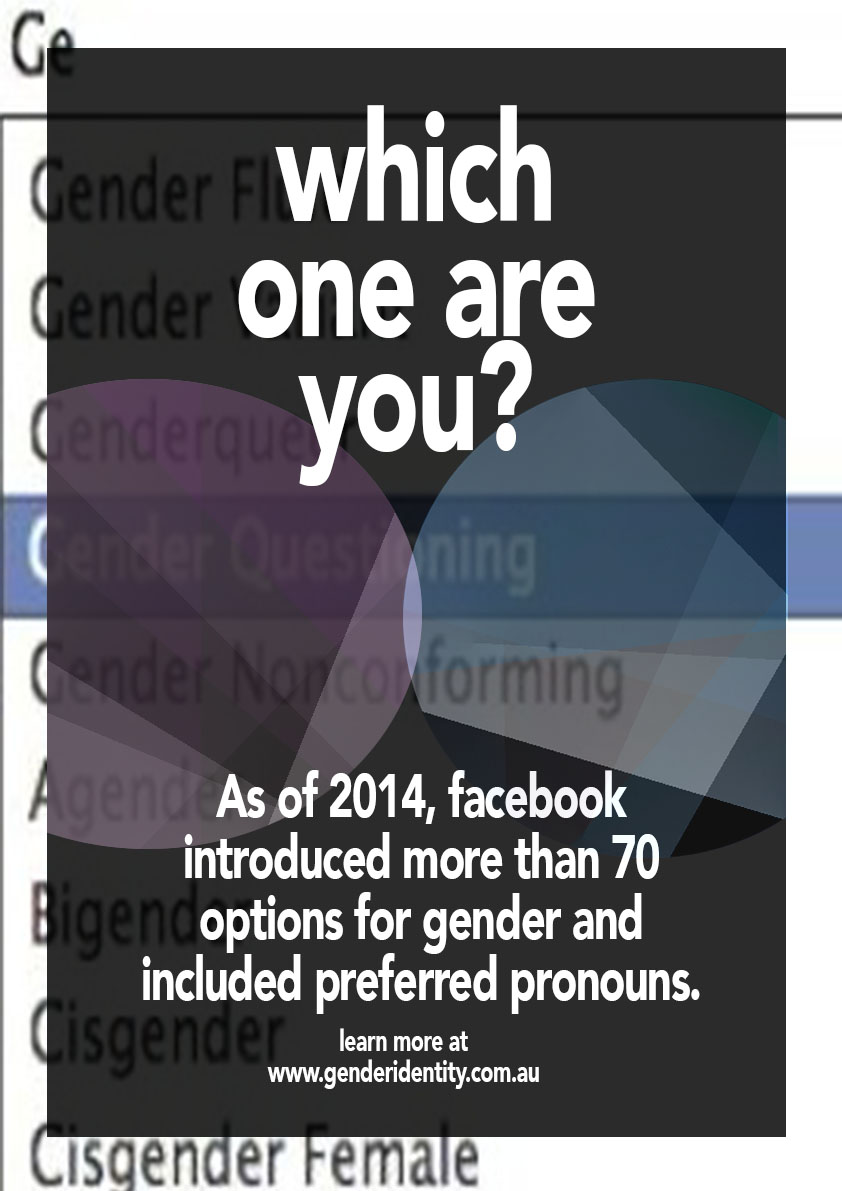 Gender identity is something that isn't talked about today. Yet sexual preference has more of a dialogue. In the day and age we live in, social media plays a huge part of our lives. We post our everyday living, share funny videos and post intimate and personal things to the internet. As of 2014 facebook added more than 50 gender options for people to identify as ranging from transgender to genderfluid. Yet there's no talk about it. How can we put our lives on facebook and look past identity? I wanted to start a dialogue of awareness on these different identities people accept as who they are. There's more to a person than just He or She. They or them. Identity is apart of who someone is and there needs to be more awareness on it for people seeking guidance to the people around them. It's a sarcastic reaction to society being obsessed with their social media yet some people don't even understand what's going on within it.
