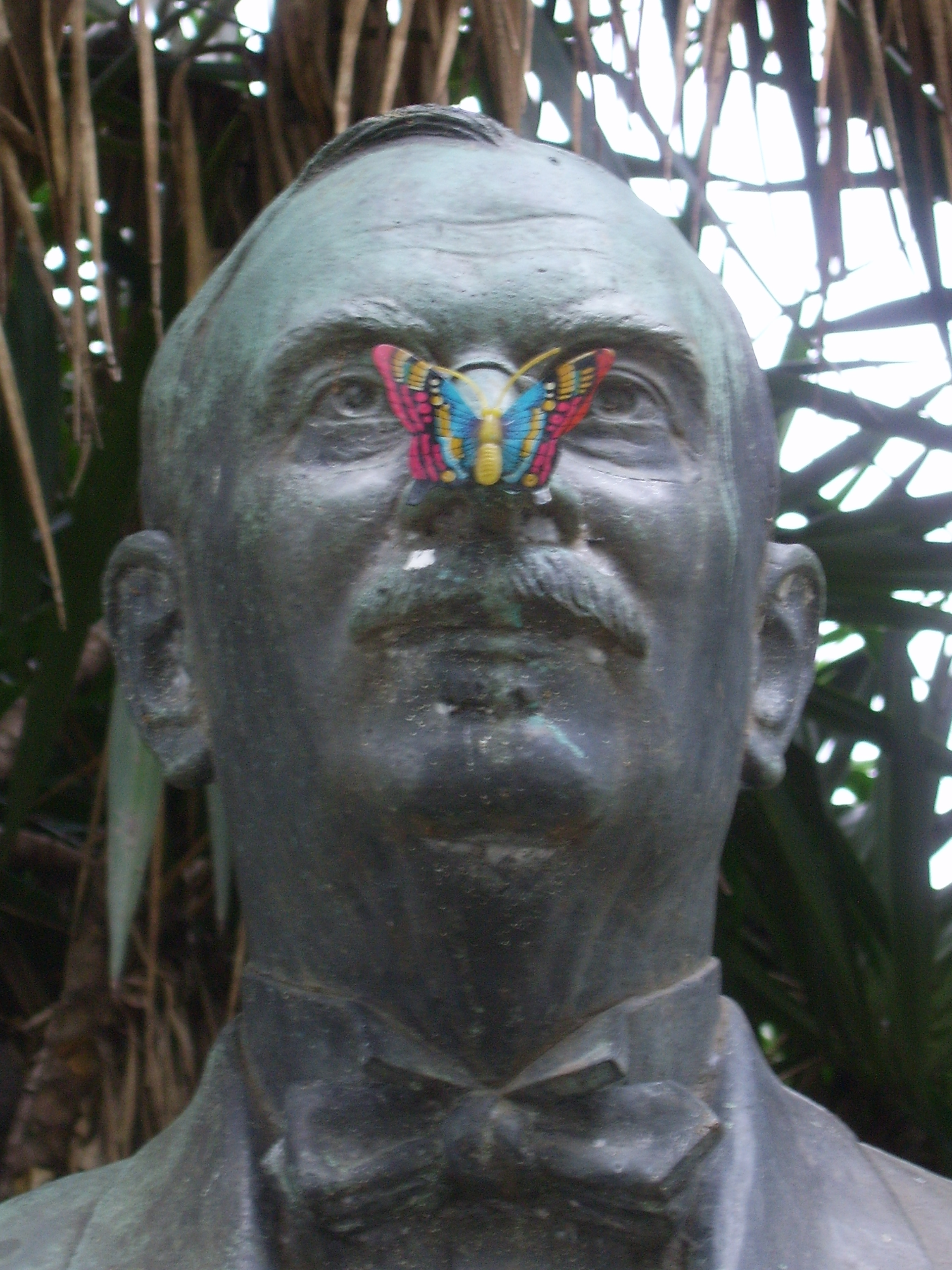 I take small toys I find or friends give to me, and glue them to signs,walls,windows or scupltures in the city, always trying to create a funny,critical,joyous, sometimes even tragic relationship. Sometimes, interfering with a small toy,a whole story is told.