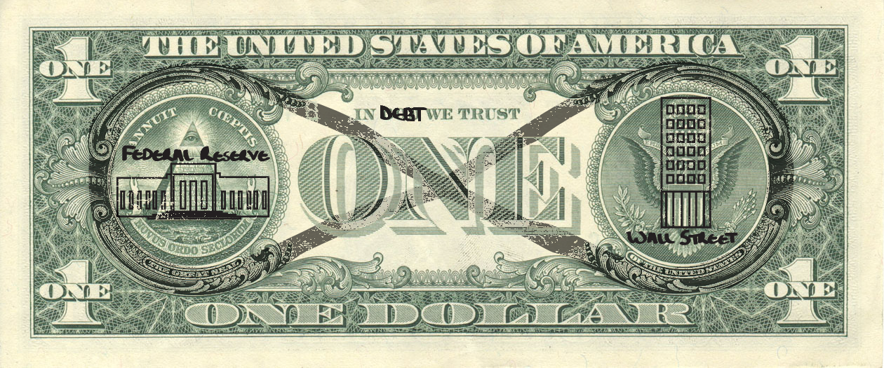 To highlight the responsibility of the Federal Reserve and Wall Street in the debt crisis is important, and needs repeating again and again, this can be done in a reduced form, as a stamp that shows that this is a cycle and continuous until the public intervene in some way.